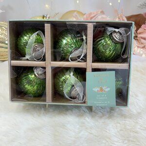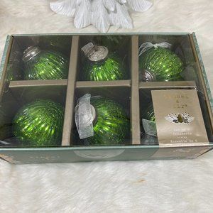 34th Pine Kugel Vintage Style Green Mercury Crackled Glass Ball Ornaments SET 6