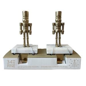 34th & Pine Stocking Holders Gold Nutcracker Marble Base Viral Christmas New