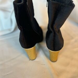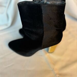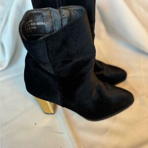 3.5” Black Velvet Gold Heels Boots Side Zipper Cato Size 8 EPC