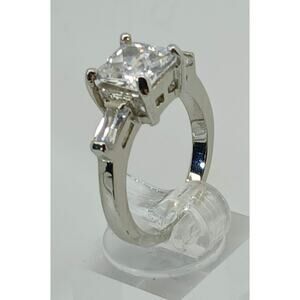 3.5 CT Vintage Princess Cut CZ Engagement Ring Silver Tone White Gold GP Size 10
