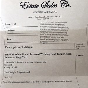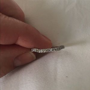 Beautiful .35CTW curved diamond half eternity band. Appraised value $700. Will include appraisal with ring. 14kt white gold. This ring just sparkles! Will work with most solitaires, 3-stone, and halo rings (see last pic of it with my halo ring). Love this but went with sapphire bands for my ring instead. Sparkles and shines. Size 6.5 now, but can be sized by your jeweler.