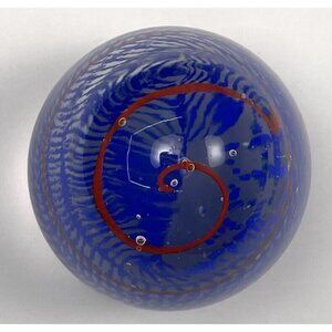 3.5" Egg Shaped Hand Blown Art Glass PAPERWEIGHT Red Spiral Blue Lattice Heavy
