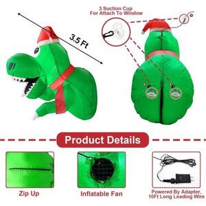 Inflatable dinosaur with xmas hat Out from window : 3.5 Ft tall unique Christmas Inflatable dinosaur wears Christmas hat. The Christmas inflatables lean out from window comes with sucker, rope, built-in fan and a plug. Copyright Certificated Model