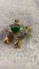 Elegant frog brooch with sparkling gold and green accents. Perfect for adding a touch of whimsy to any outfit.