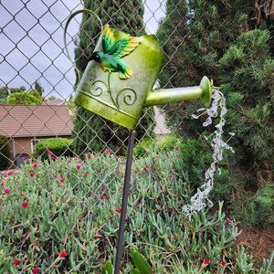 35" H, Metal Hummingbird Watering Can Solar Stake Garden Decor