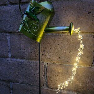 * Watering can with attached silhouette Hummingbird create magical light decor in your garden.