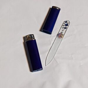 3.5" Mont Bleu Czech Clear Crystal Nail File w/Blue Swarovski & Cobalt Blue Hard Nail File Case