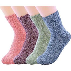 3-5 Pairs Womens Multicolor Fashion Warm Wool Cotton Thick Winter Crew Socks