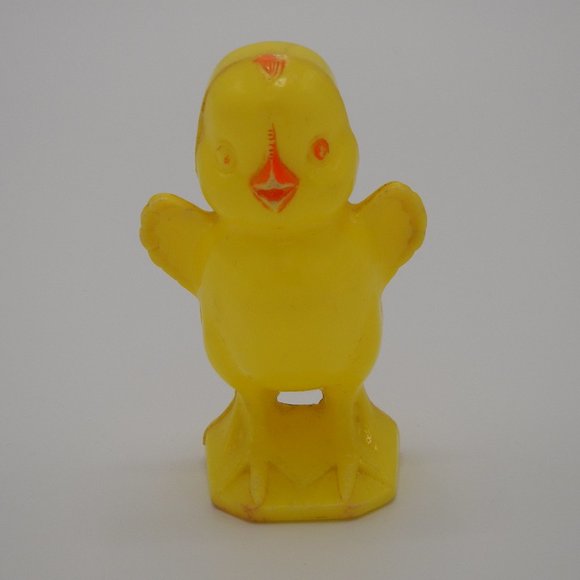 This chick was made by Knickerbocker Plastics from California, NOT to be confused with Knickerbocker Toys, which has been in business since the 1850's. The Knickerbocker Plastics Co only operated about a decade - from 1945 to 1955. They made the most adorable hard plastic toys for holidays. Theirs were really high quality, and are highly desired by collectors even today. Because of the similarity in names, they are often confused with the Knickerbocker Toy Company, which made all kinds of dolls and other toys.