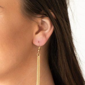 Infused with robust red beading, glistening gold triangular frames join below the collar, creating a fierce geometric fringe. Features an adjustable clasp closure.