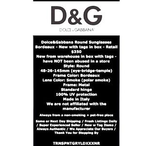 $350 Dolce&Gabbana Round Sunglasses Bordeaux Frame Smoke Lens Made in Italy NWT