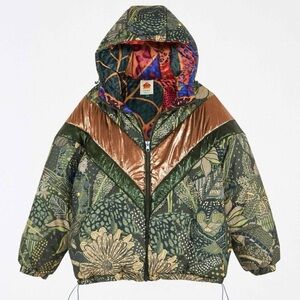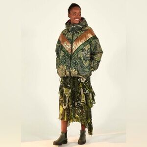$350! FARM RIO GREEN COOL LEOPARD REVERSIBLE PUFFER JACKET SZ medium NWT!