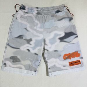$350 HERON PRESTON Camouflage-print Track Shorts In Grey Size Medium