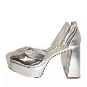 $350 Larroude Ari Strap Platform Heel SANDAL PUMP LEATHER SILVER 7.5 (DB29)