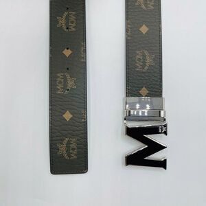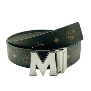 $350 MCM Sea Turtle Green Visetos Canvas M Buckle Reversible Belt
