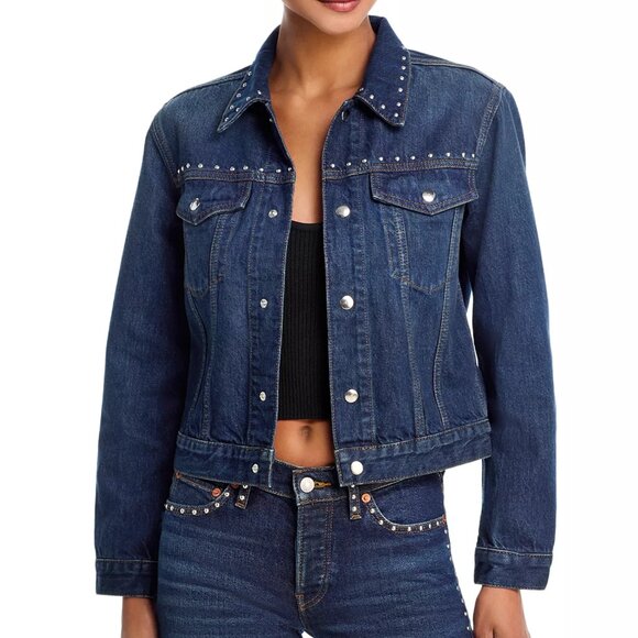 Description: 350$ RE/DONE Baby Snap Denim Trucker Jacket Long Sleeves