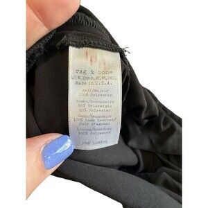 Elevate your wardrobe with this stunning black and white colorblock asymmetrical dress from Rag & Bone. The dress features a round neck, sleeveless design, and a button closure for a chic and sophisticated look. Perfect for a party or formal occasion, this knee-length dress is made of high-quality polyester fabric that is both comfortable and durable. The dress is designed with a relaxed fit, making it ideal for business wear as well.