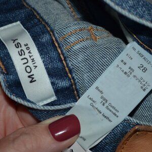 $350 Sz 28 Moussy Blue Frayed Hem Skinny Jeans