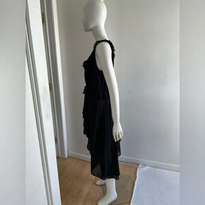 $350 The Kooples Black Ruffle Flowy Turquoise Beaded Hi Low Dress Sz 1 Small