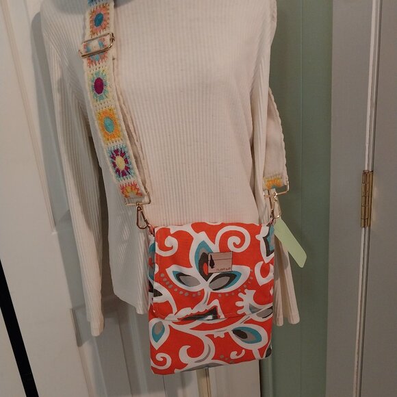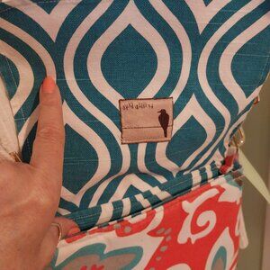 3536 Medium size Reversable The Flipped Bird Brand Orange and Teal Crochet Strap. 9" X 10".