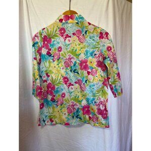 #3544 NAPA VALLEY womens floral top size P, button down, petite womens floral blouse, chest 36", lenght 26"