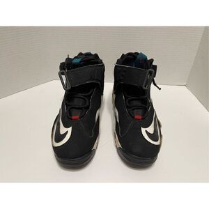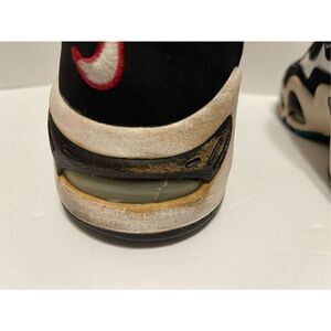 Light scuffing on black leather shown in photos. Discoloration on midsole. Small cut on rear air bubble of left shoe. Light wear on soles