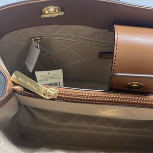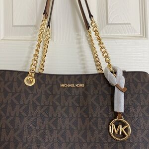 $358 NEW! NWT MICHAEL KORS Susannah Large EW Tote Brown/Luggage w/Chain Detail