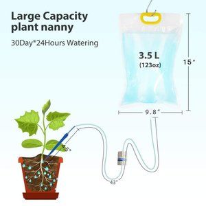 "Large Capacity - the automatic drip irrigation system has a 3.5L large water bag and an adjustable precision flow valve, the IV drip bag can work about 3 to 20 days depending on the plant's water demand, temperature, humidity and soil composition; If you are busy and away from home, you can prepare the automatic plant waterer in advance to take care of your plants and keep them stay alive all the time