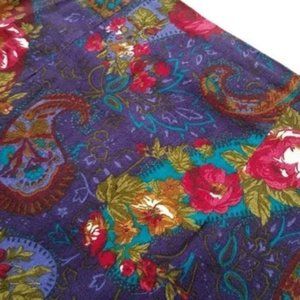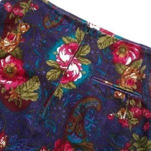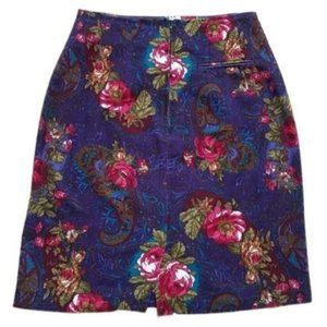 Nice vintage purple paisley and floral pencil skirt by 35th&10th. Size juniors 7. In Excellent condition. No rips, stains, or holes. With back right side pocket, 8" zipper, and back slit opening. Two front and four back waist pleats, which are not very visible. Soft denim material made of 100% cotton. Machine washable. Made in the U.S.A.