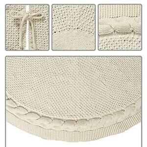cream knit Christmas tree skirt, cable knit tree skirt, rustic farmhouse holiday décor, sweater knit tree skirt 36 inch, neutral Christmas tree skirt, cozy cream holiday décor
