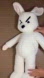 Kawaii plush white angry bunny about 26” tall. Known as the fearless bunny with two front pockets big enough to fit both hands. The most unique things about this giant plush is his adjustable fur sleeves to look more tough as it also shows embroidered tattoo on the left arm.