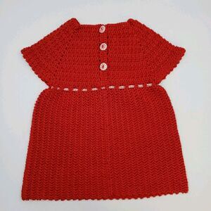 3-6 Months Baby Girl Dress Red White Crochet Knit Short Sleeve Summer Patriotic.