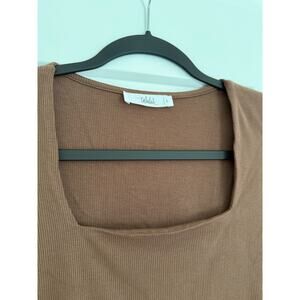 $36 New Talulah Square neck Ribbed Crop Tee - Brown - Large