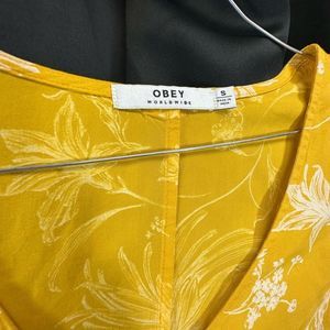 36 OBEY Yellow Flower Blouse lightweight women’s size small vacation summer