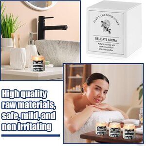 Soy Wax Materials: these candles are made of quality soy wax, 180-200g per box, 80g for wax weight, exudes a mild, non irritating fragrance, long lasting burning, suitable for children, the elderly and other people, creating a safe place for your living space cozy atmosphere