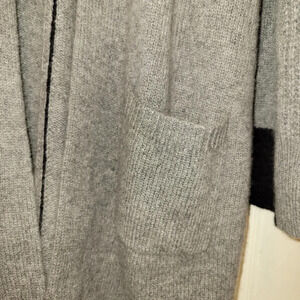 360 100% Cashmere Open Long Cardigan grey with black borders size L