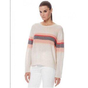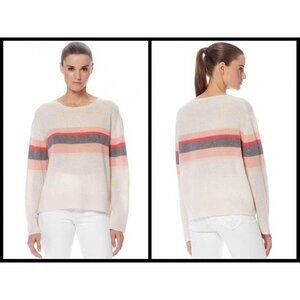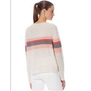 💕360 CASHMERE💕 Christina Central Stripe Knit Sweater Chalk Medium M NWT