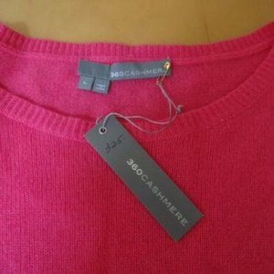 360 CASHMERE PINK WHITE STRIPE 3/4 SLEEVE BOAT NECK SWEATER L NWT $325