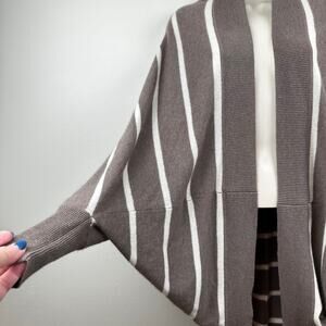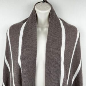 360 Cashmere Cardigan Cocoon Sweater Striped Taupe Tan Sm Quiet Luxury Classic