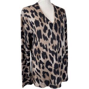 360 Cashmere Geraldine Leopard Print Lightweight Sweater V-Neck Size Medium