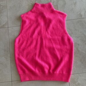 360 Cashmere Lawrence100% Cashmere Hot Pink Sleeveless Mock Neck Top Shell