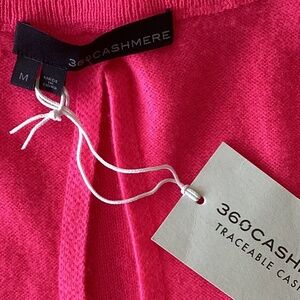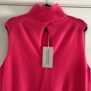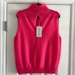 360 Cashmere Lawrence100% Cashmere Hot Pink Sleeveless Mock Neck Top Shell Sweater Open Back