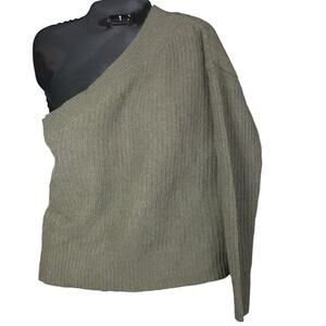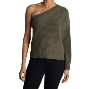 360 Cashmere Lena Sweater One Shoulder Olive Green X Small Medium NWT | MSRP$403