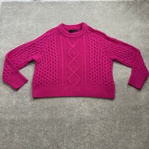 360 Cashmere NWT Anna Sweater Cable Knit Chunky Wool Blend Magenta Pink Sz Sml