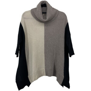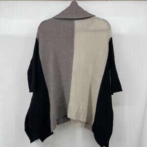 360 Cashmere Oversized X-Small Poncho Sweater Cowl Neck Colorblock Neutral Tan