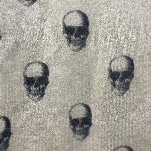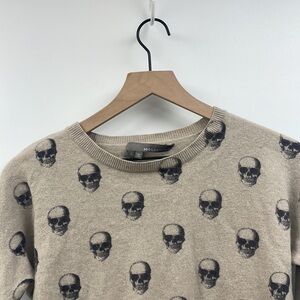 360 Cashmere Skull Graphic Intarsia Crewneck Long Sleeve Knit Sweater Tan Small