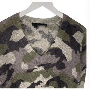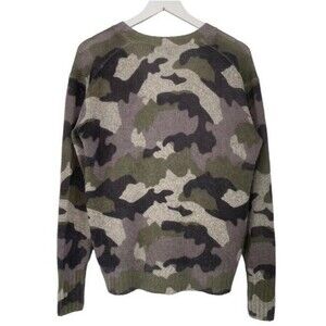 360 Cashmere Sweater Emerie Camo V Neck Delicate Lightweight Merino Wool Medium