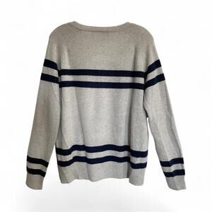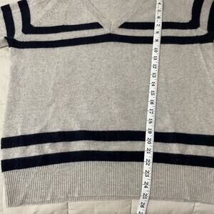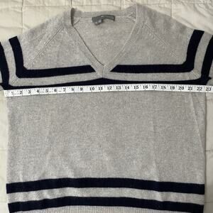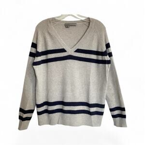 360 Cashmere Sweater Mens Medium Gray Blue Stripe V Neck Pullover Academic