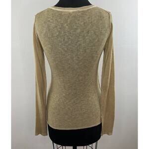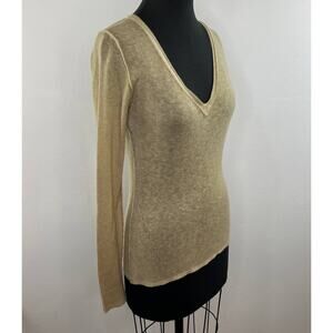 360 Cashmere Tan Beige Long Sleeve V-Neck Pullover Knit Sweater Size M Medium
