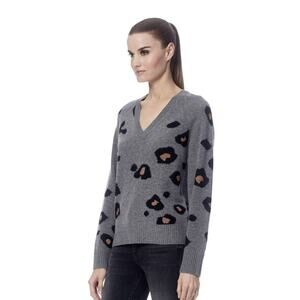 360 Cashmere Women's Janie V-Neck Sweater Mid Heather Grey Black Toffee Med $449